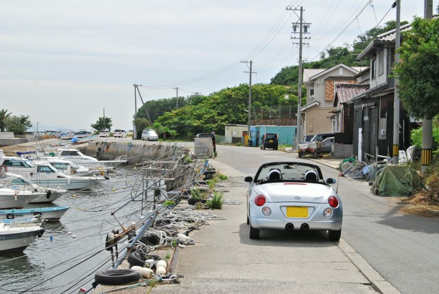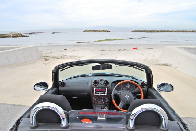 少し走ると、海岸線になったので、さっそく脇に止めてコペンをオープンにする、海岸特有の、潮の香りを浴びながら走り出す。