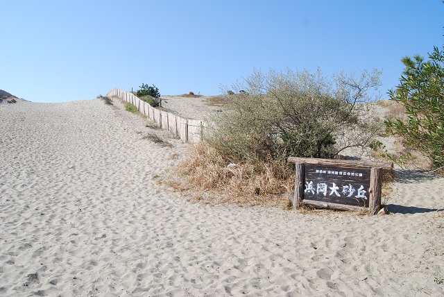 途中、御前崎遠州灘県立自然公園浜岡大砂丘、の看板を見つけ早速行って見る事にした。