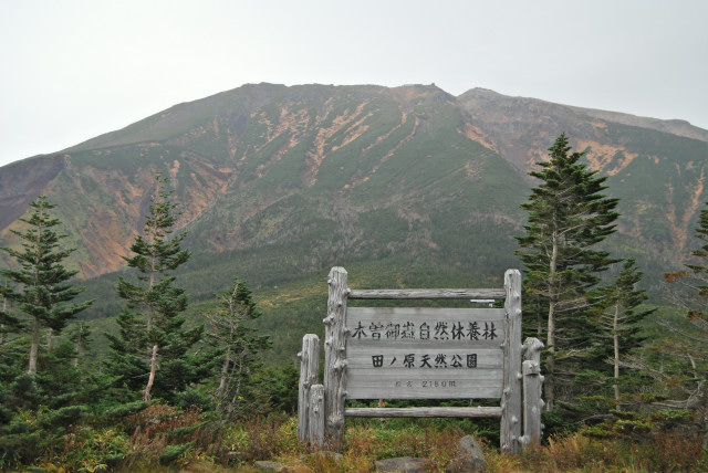 そして一番上の、田ノ原天然公園に到着、ここは御嶽山の七合目である、周りには駐車場と土産屋、宿泊施設、公衆トイレが立ち並んでいる。