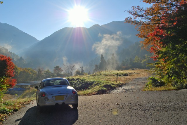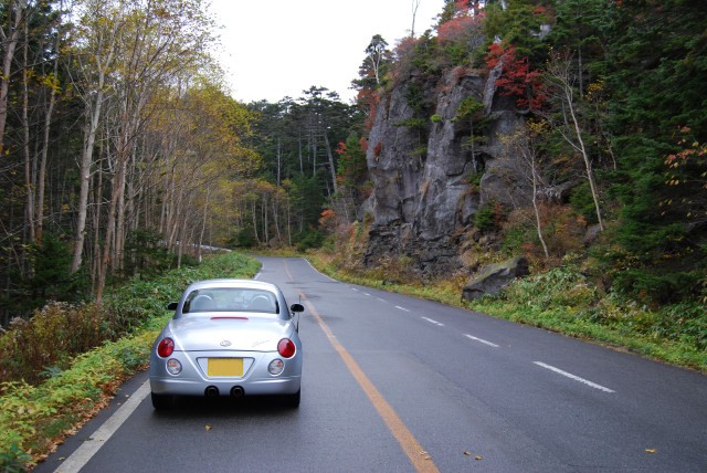 とてもコペンが走る道じゃない山岳道路を、何度もコペンの腹を擦りな