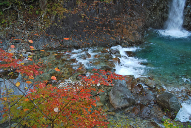 そして到着、やっぱり紅葉は少ない、でも不動滝よりは多少良い。