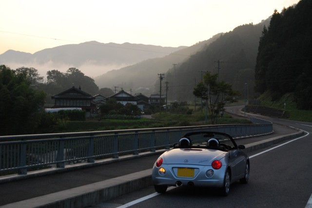 夜明けの田舎道は、雰囲気も良く、車も少ない、特に信号が殆んど無い