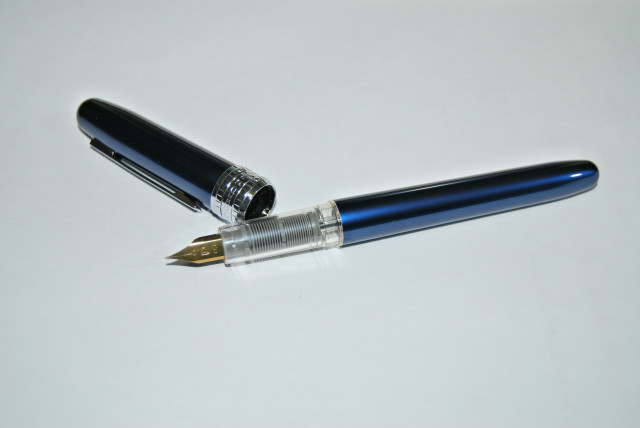 私は写真のように、ブルーのボディに金色のペン先が気に入っている。