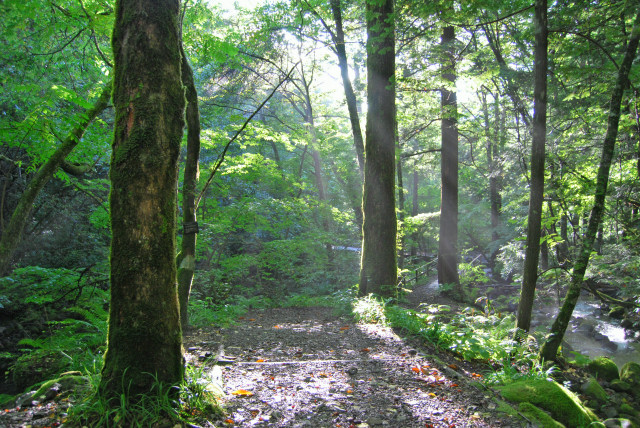6枚目の写真は木漏れ日が綺麗だったので撮ったが、これだけ森が深いと、安らぐより、熊が出そうで怖い。