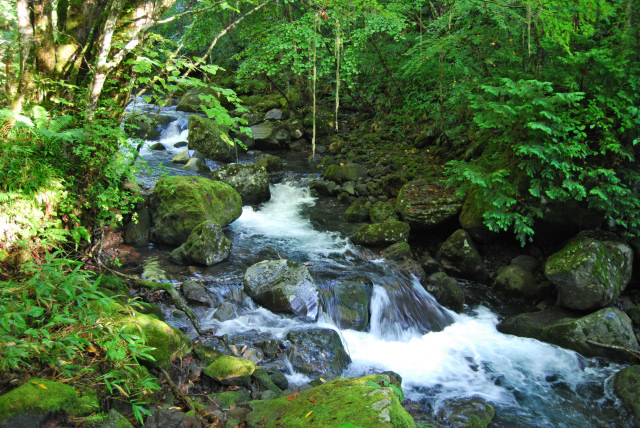 暫らく歩くと、5枚目の写真の、こもれびの滝に出る、岩まで苔が生え、いかに太古の森か窺える。