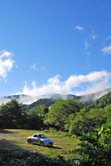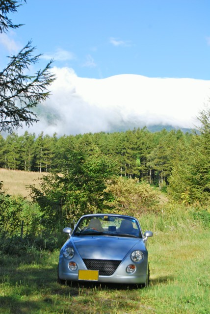 7枚目のコペンの写真は、後ろの山に掛かった雲が津波のように見え面白いので撮った。