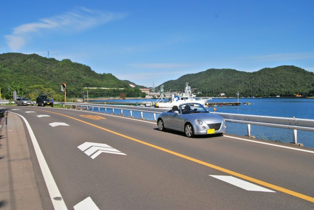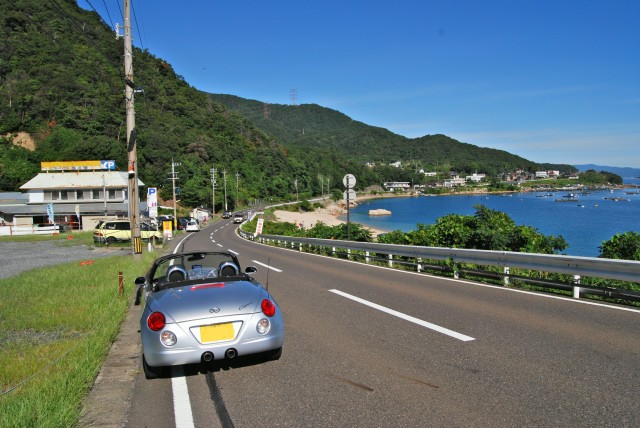 午前中は、若狭湾側の道は日陰になるので、とても涼しくオープンドライブに向いている。