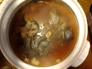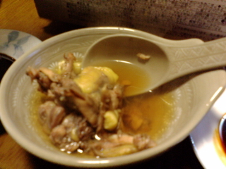 と言われ、なるべく形の分からない所を選び、小皿に盛って食べてみた……う~ん微妙、しかしスープはとても美味しい、先輩の小皿には、足と分けの分からない脂肪の固まりが盛られ、食が進まないようだった。