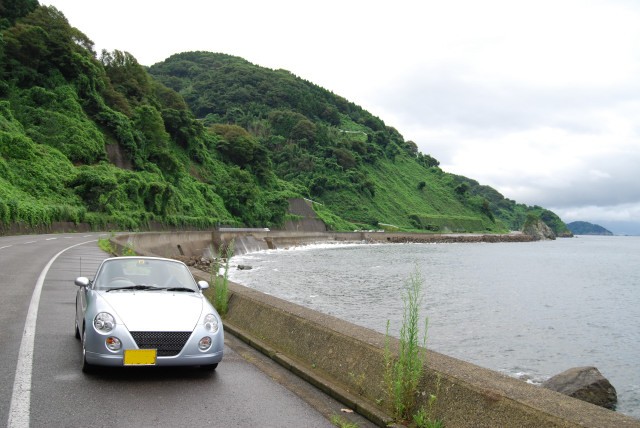 このあたりで雨も上がりオープンにする、全身を潮の香りが包み、海に来た事を実感。