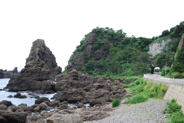 晴れた日の越前海岸はとても綺麗だが、曇り空のため海が黒く見える。