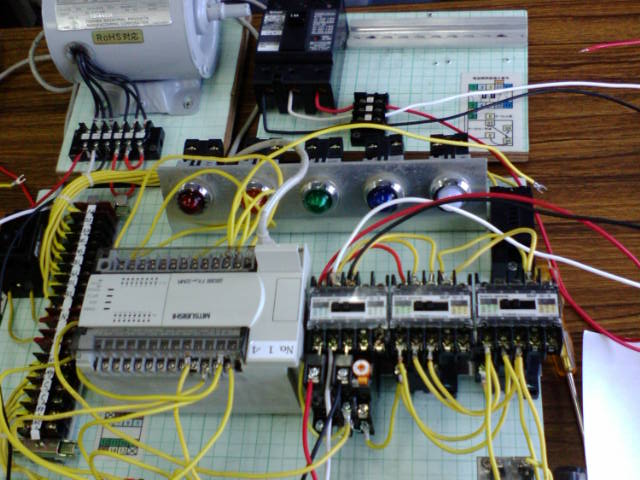 今日はプログラムシーケンスの続きだ ラダー図からニモニックを読み取り書き出し コントローラーへ入力して行く そしてちゃんと動くか確認・・・・・動かん^^; 先生に聞いて プログラムやり直しちゃんと動くとちょっと感動v
